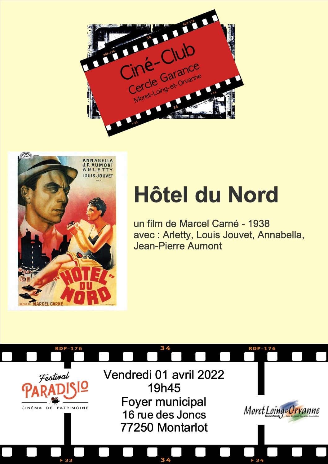 Le Ciné-Club Cercle Garance vous propose un film de Marcel Carné de 1938 : Hôtel du Nord, avec Arletty, Louis Jouvet, Annabella, Jean-Pierre Aumont.