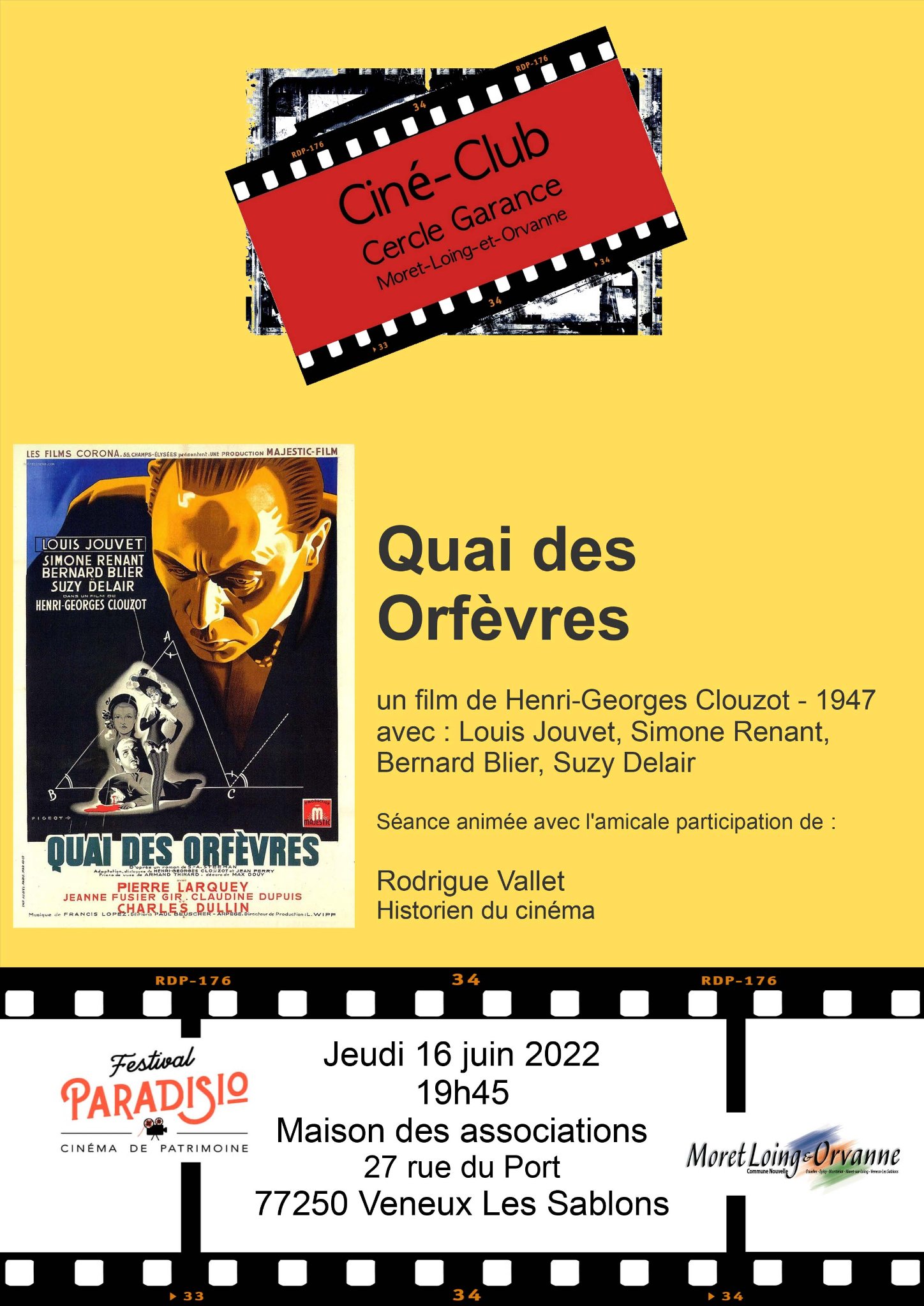 🎬🎥 Le Ciné-Club Cercle Garance vous propose un film de Henri-Georges Clouzot : « Quai des Orfèvres » de 1947, avec Louis Jouvet, Simone Renant, Bernard Blier et Suzy Delair.