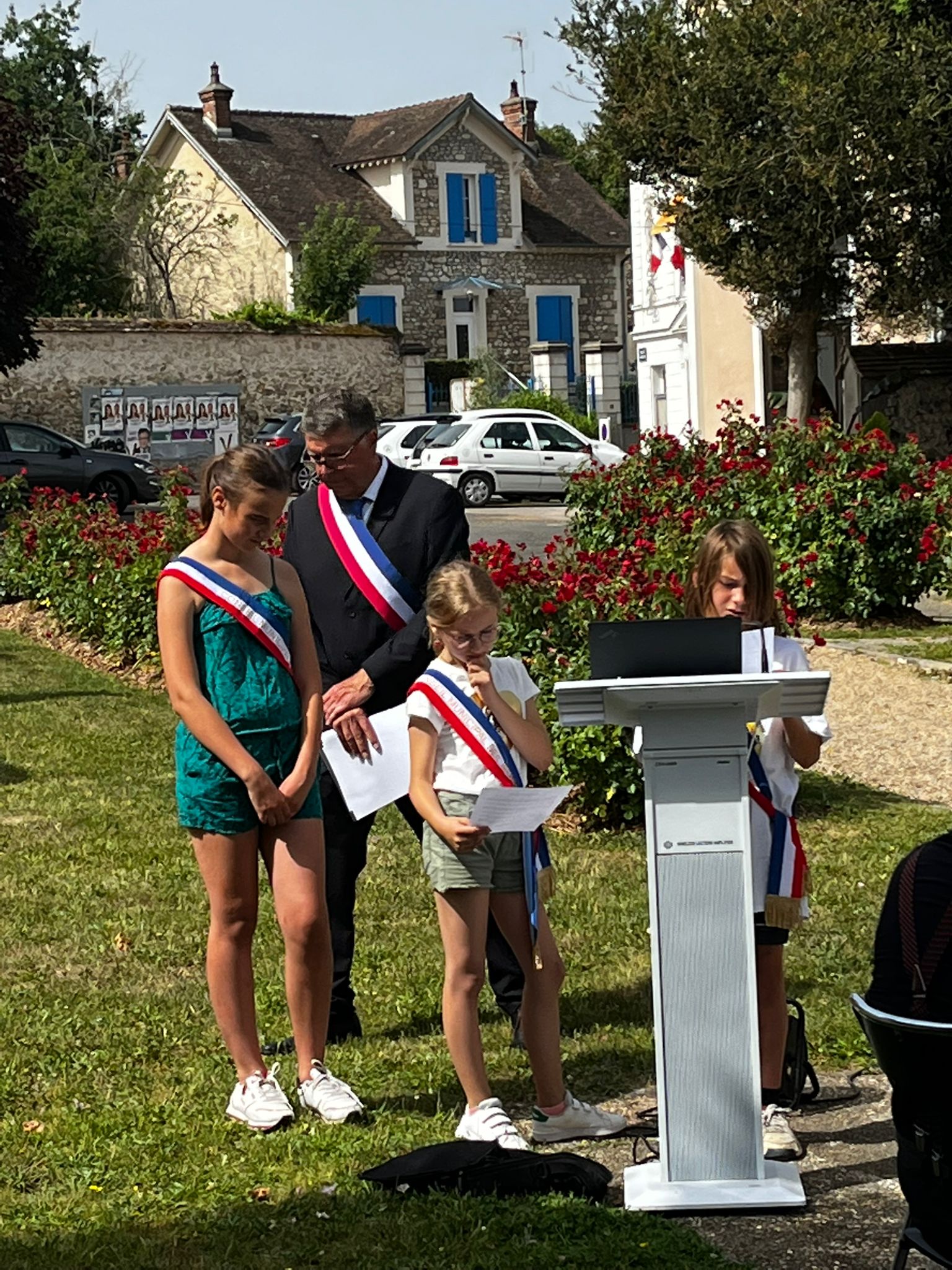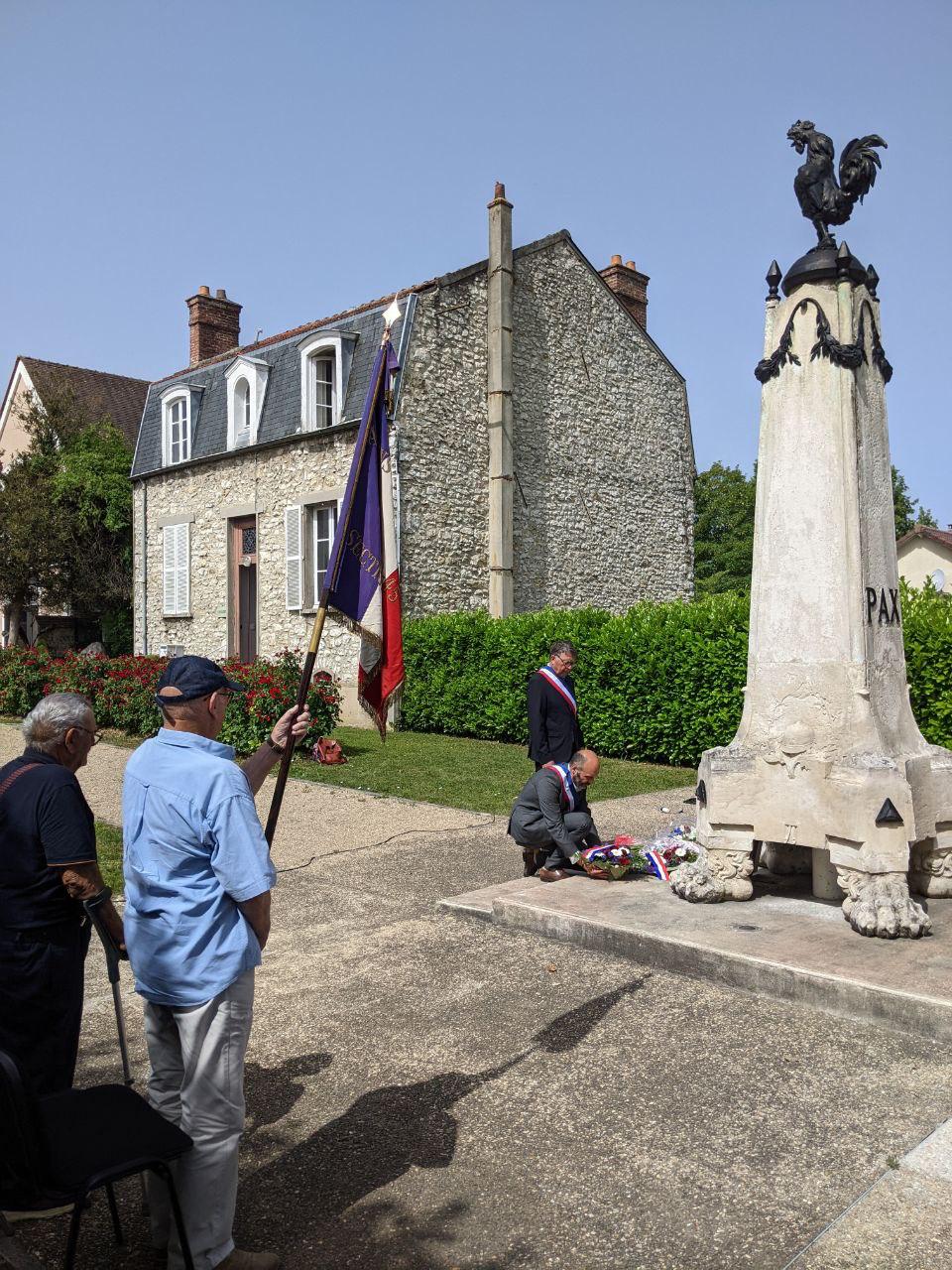 Dikran Zakeossian, Maire de Moret-Loing-et-Orvanne, et Hervé Jochmans, Maire délégué de Veneux-Les Sablons, ont déposé des gerbes avec les membres du FNACA et les enfants du CMJ en souvenir du 18 Juin 1940.