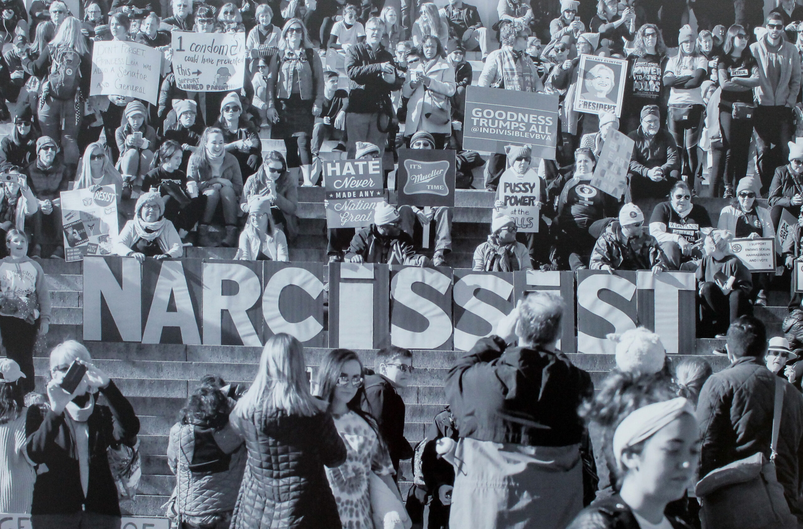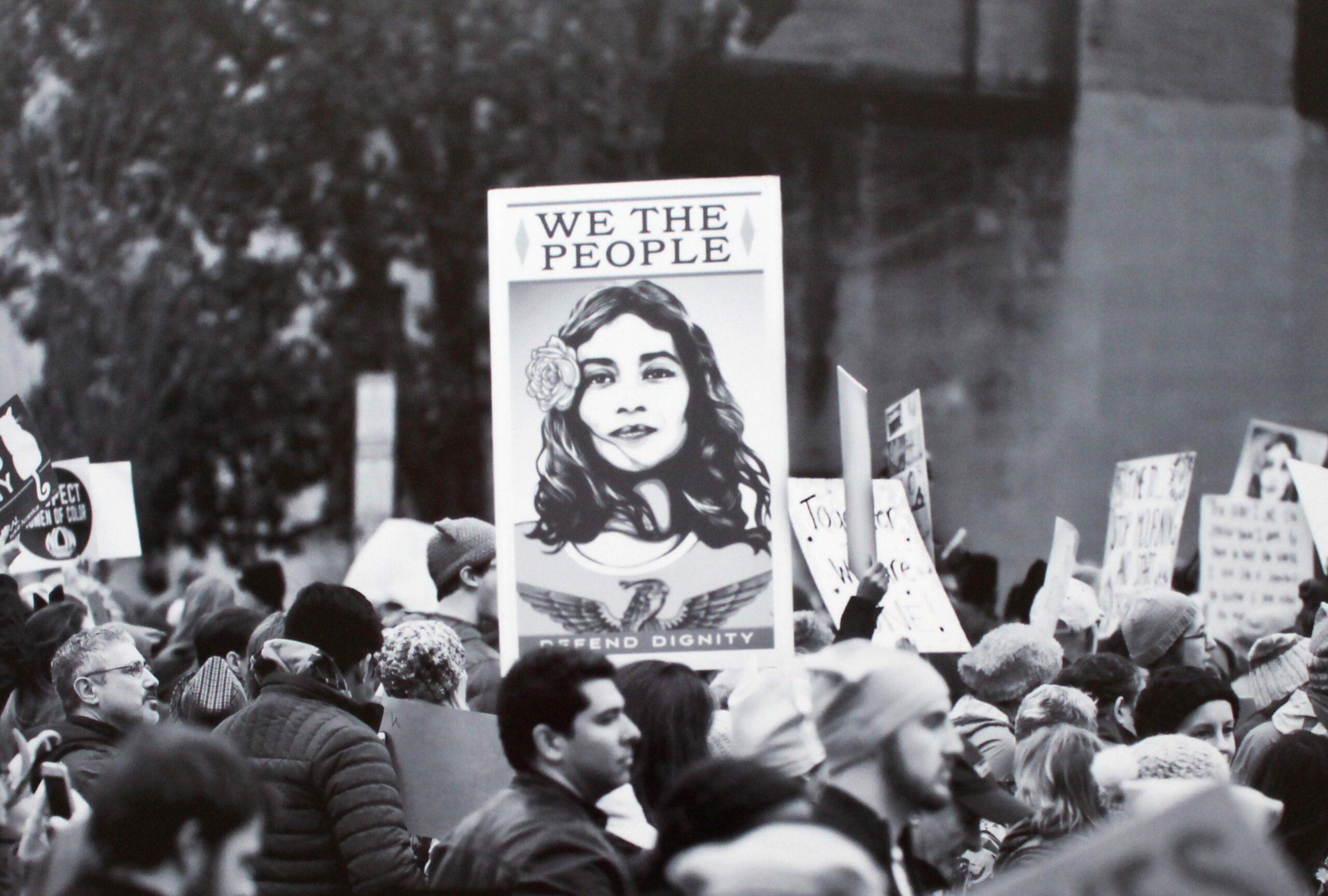 JUST.NO. est un slogan que brandit une femme pendant la Women’s March, qui eut lieu à Washington le 21 janvier 2017, à la suite de l’élection de Donald Trump et à ses propos sexistes. Des milliers de femmes, coiffées du Pussyhat (bonnet rose aux oreilles de chat, tricoté pour la circonstance) MARCHENT.