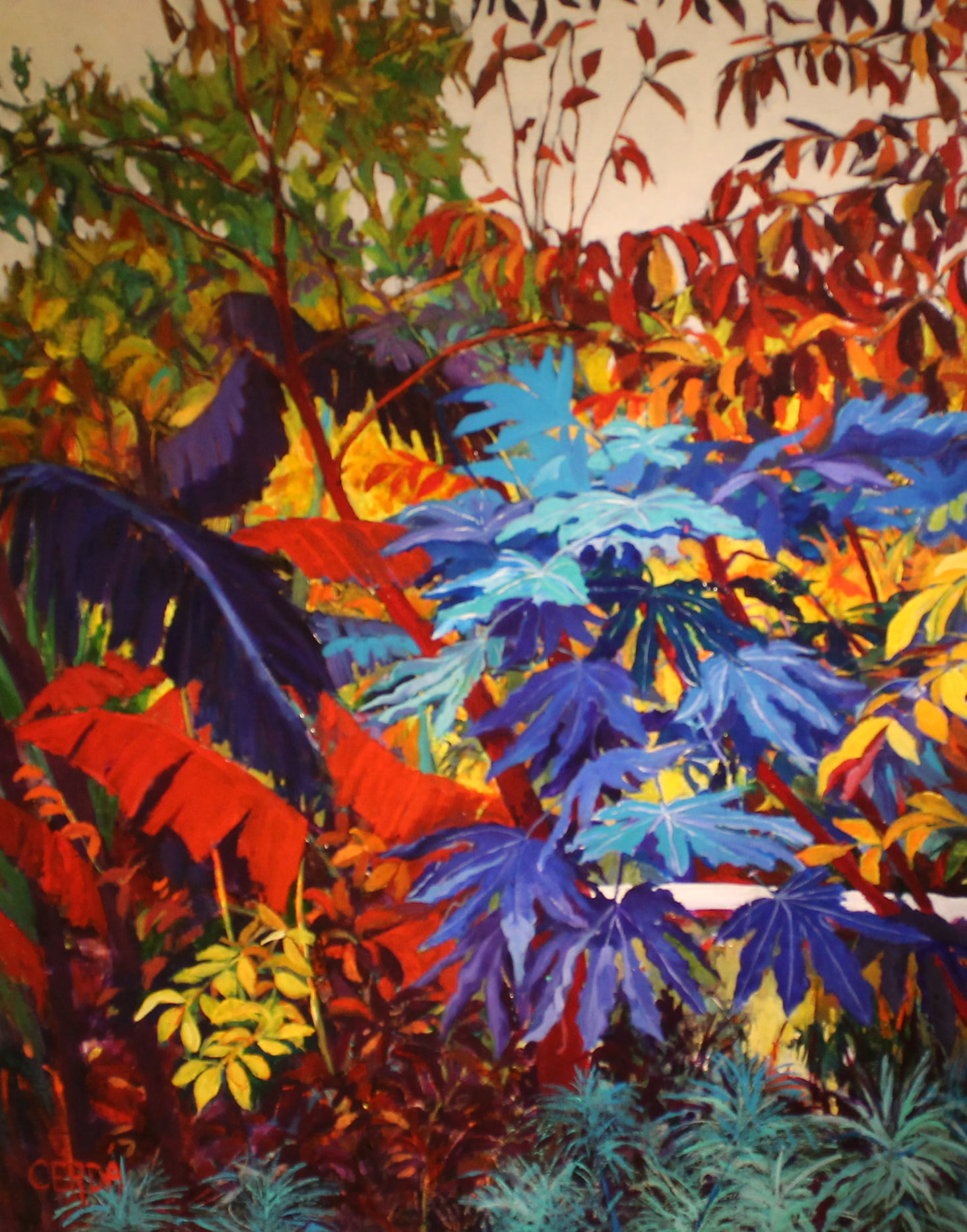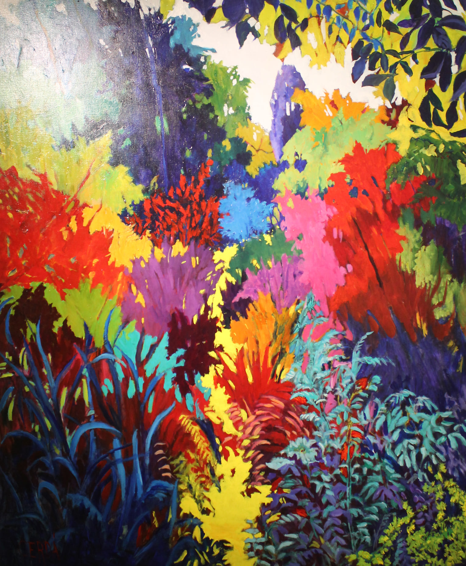 L’artiste aime faire parler les paysages. Depuis son entrée à la galerie Le Vivier, en mars 2017, Cerdà ne cesse de nous surprendre, pour notre plus grand plaisir. Elle prend des libertés avec le réel, explore et invente son propre langage. La couleur, libérée du doute, nous arrive lumineuse, intense et éclatante. L’artiste se sent à l’aise dans l’affrontement spectaculaire et audacieux des formes végétales colorées pour nous offrir des toiles vibrantes. Sa peinture ne ressemble à aucune autre, une véritable invitation à la fête !