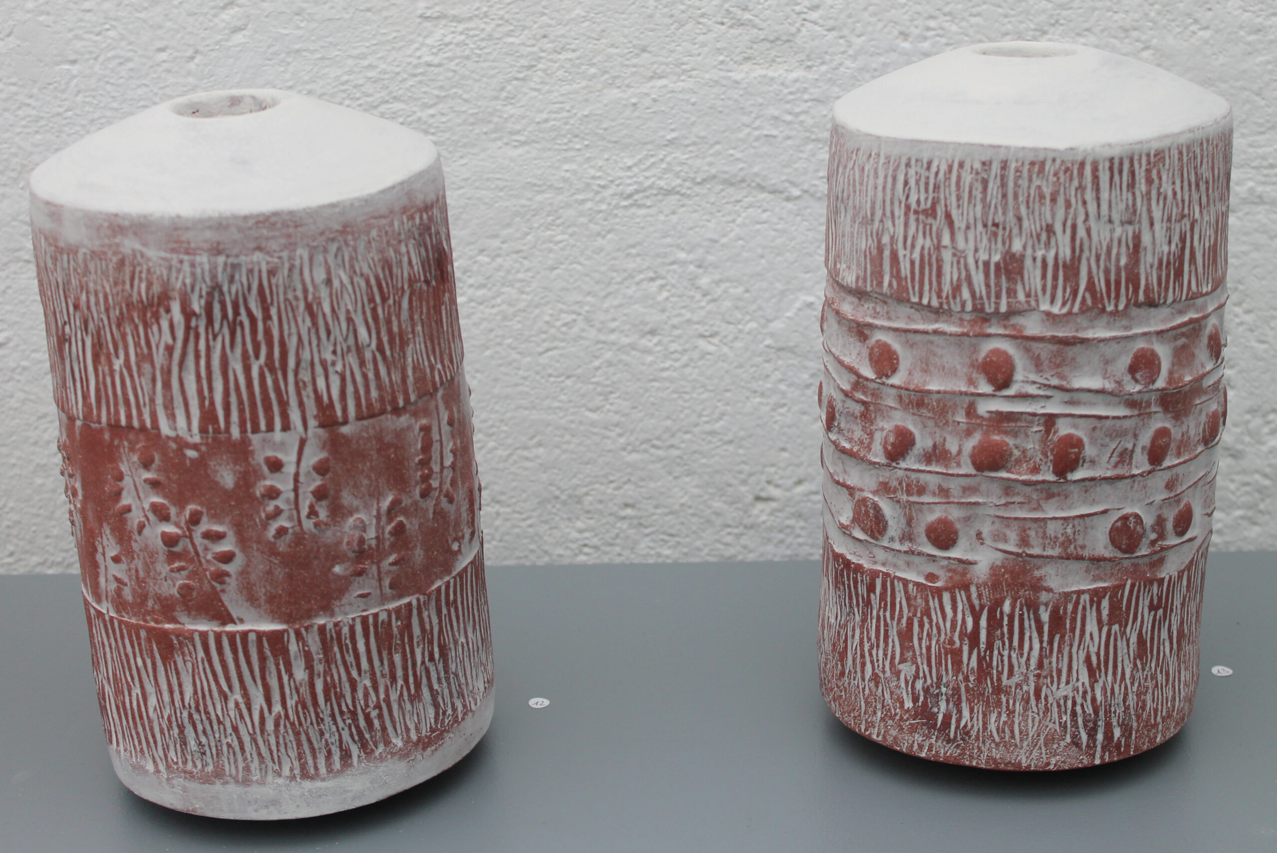 Céramiste, sculpteure, graveuse, elle nous présente aujourd’hui différentes séries, liées à ses préoccupations sociales et à l’écologie. Pavés, sceaux-cylindres, gravures.