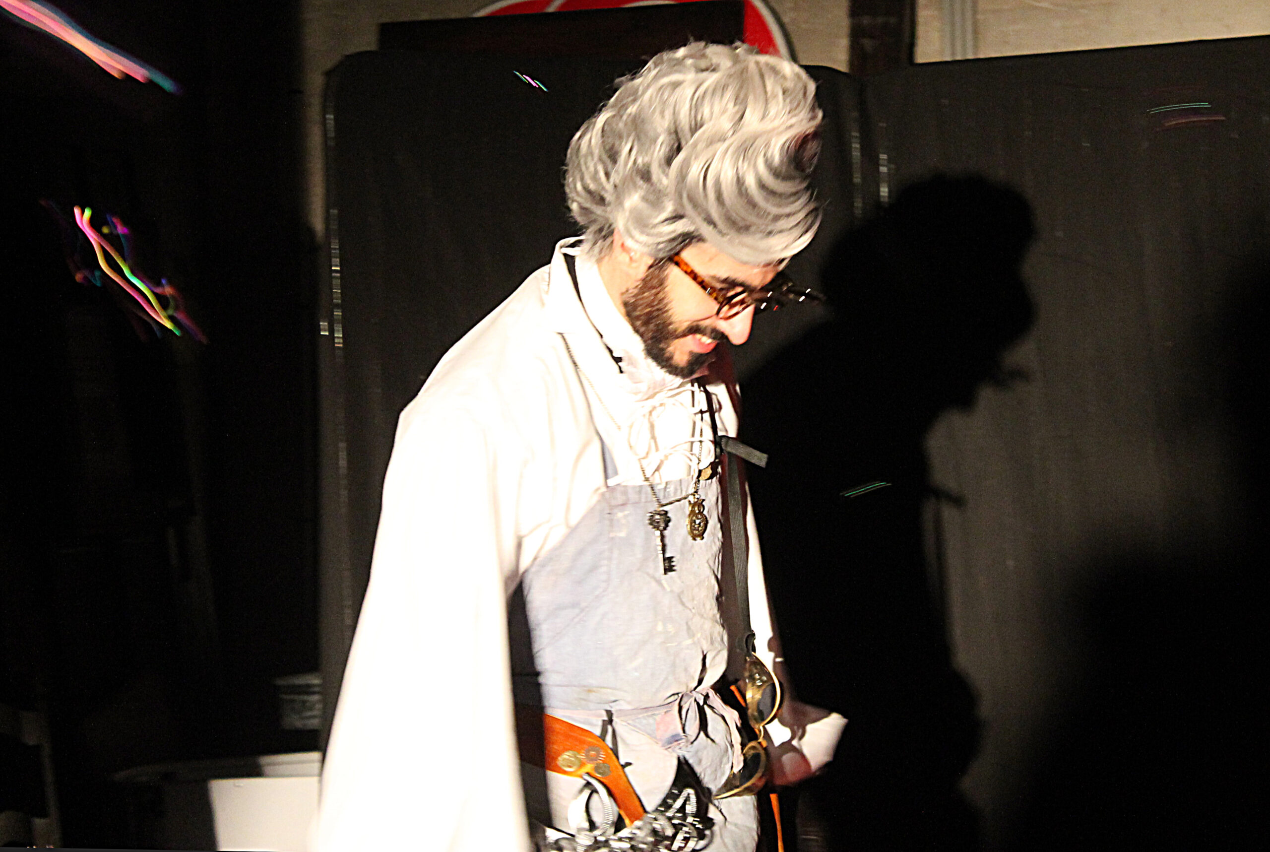 La cour de la mairie et la maison Lesage dans « La Fabrique », avec ses artisans reproduisant le mécanisme du ciel et de l’espace, fabricant des arcs-en-ciel, des nuages, etc., dans une ambiance visuelle Steampunk.