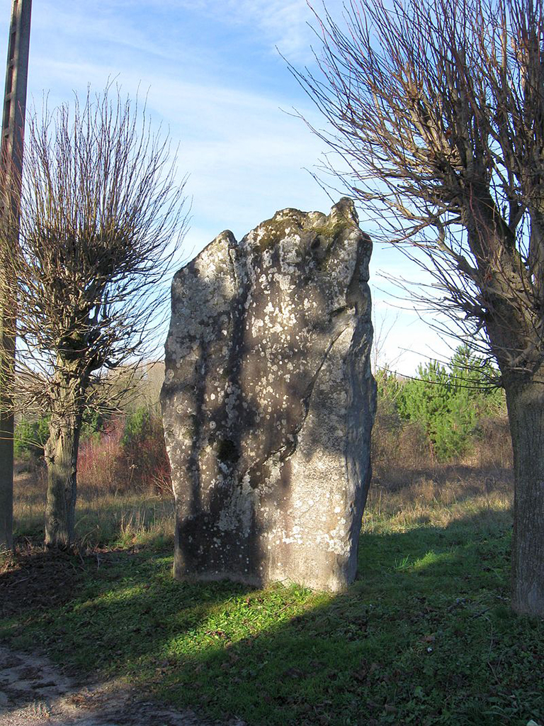 Bloc en grès, mi-plat, de forme irrégulière qui mesure 3,50 m de haut, 2,50 m de large et son épaisseur moyenne est d’environ 50 cm. Il est enfoncé de 1 m en terre. Sa masse est estimée à 11 tonnes.