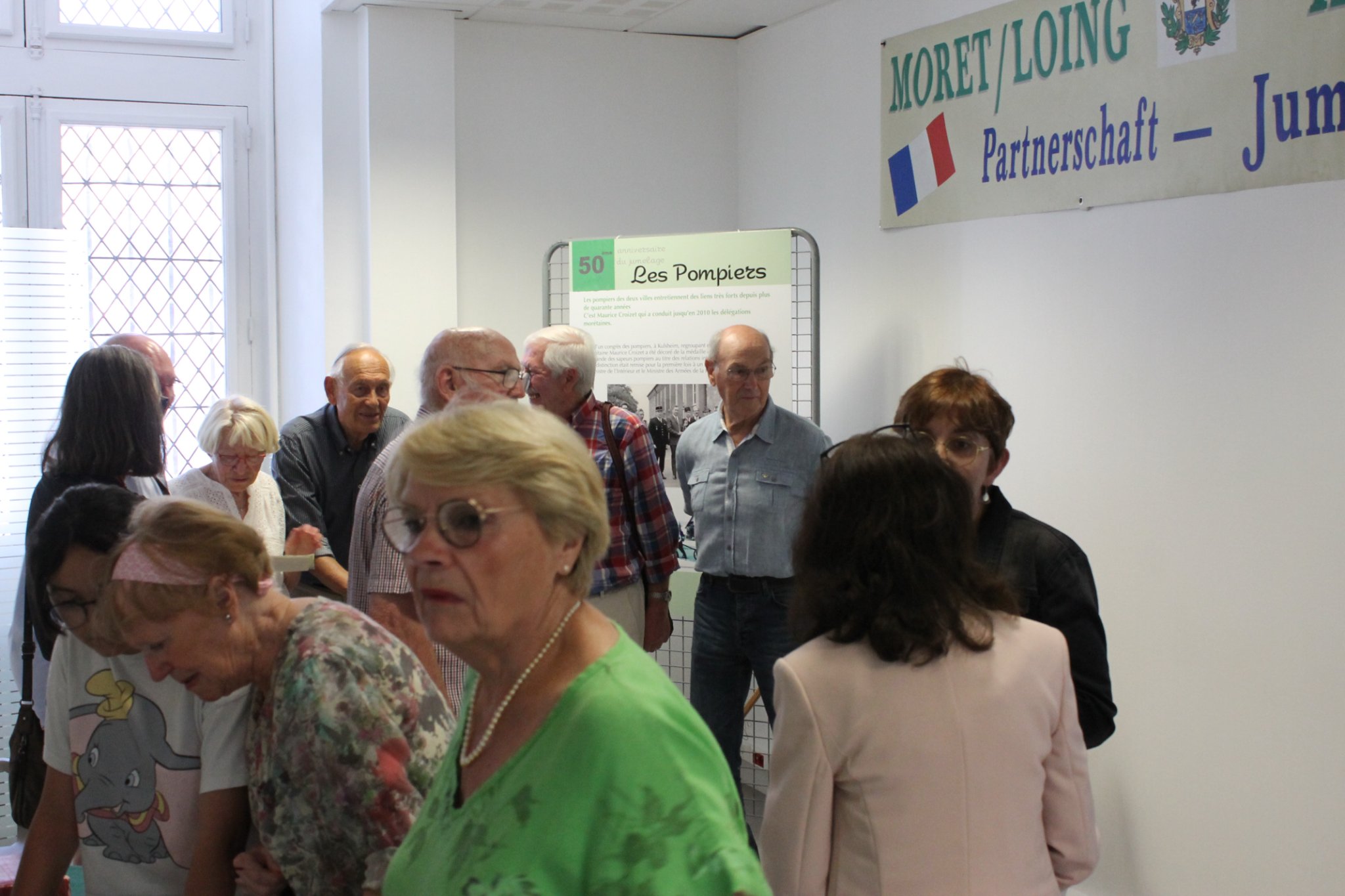 🔸 Pour les 50 ans du jumelage entre Moret-sur-Loing et Külshseim (Allemagne), une exposition organisée par l’APRIM et sa Présidente Catherine Héricher avec le soutien de la nouvelle commune, vient d’ouvrir ses portes. Inauguration en présence de nombreux élus dont M. le Maire Dikran Zakeossian. Pour retracer ses 50 ans, beaucoup de souvenirs, photos, revues de presse, des cadeaux, des tableaux, répartis sur plusieurs thèmes, pompiers, historique du jumelage, avec les points forts des anniversaires du jumelage, le football, un thème sur Külsheim avec les projets de la ville.