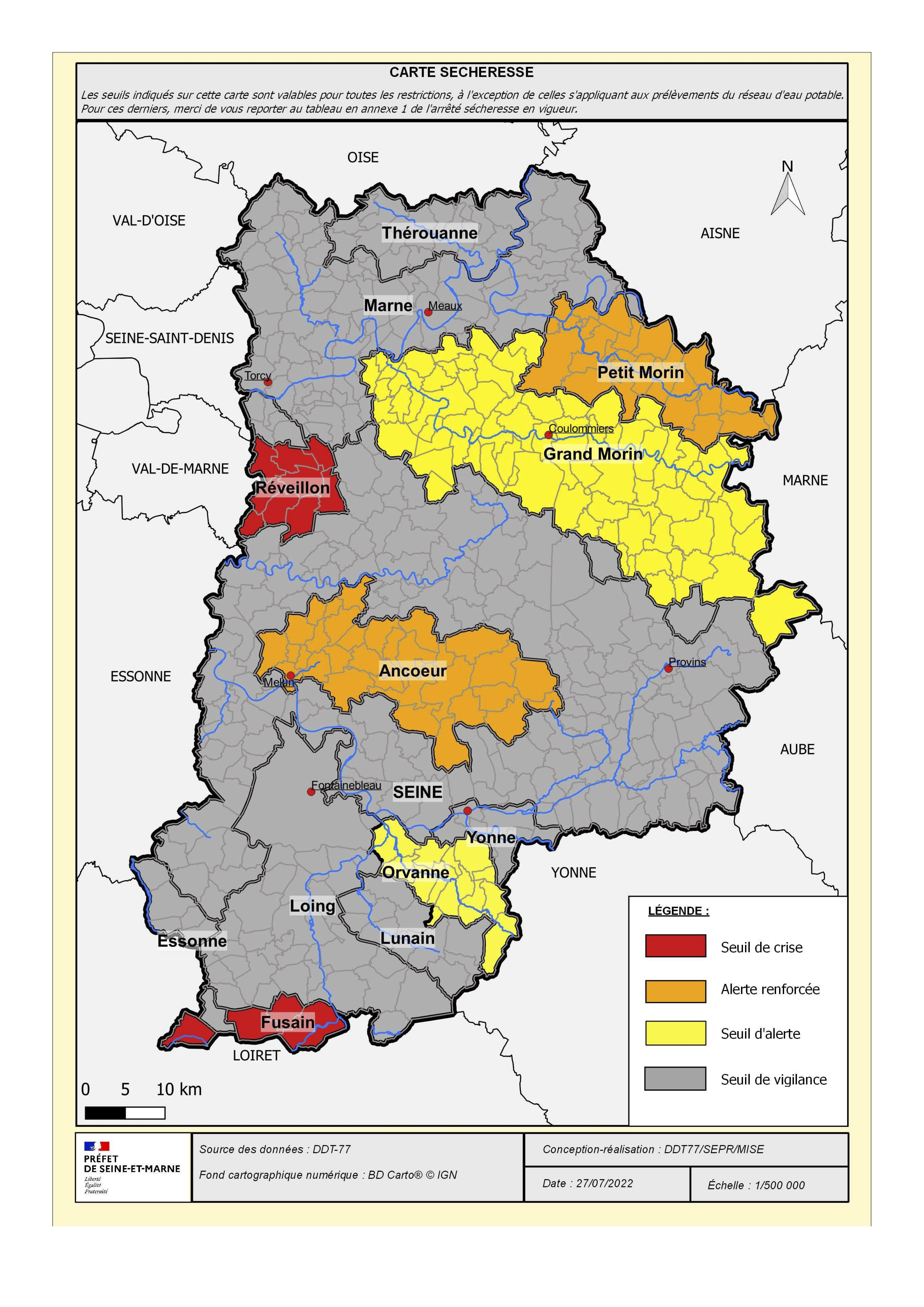 En raison de la situation de sécheresse, la Préfecture de Seine-et-Marne vient de placer la commune de Moret-Loing-et-Orvanne en situation de vigilance (le Loing et le Lunain) et d’alerte (l’Orvanne).