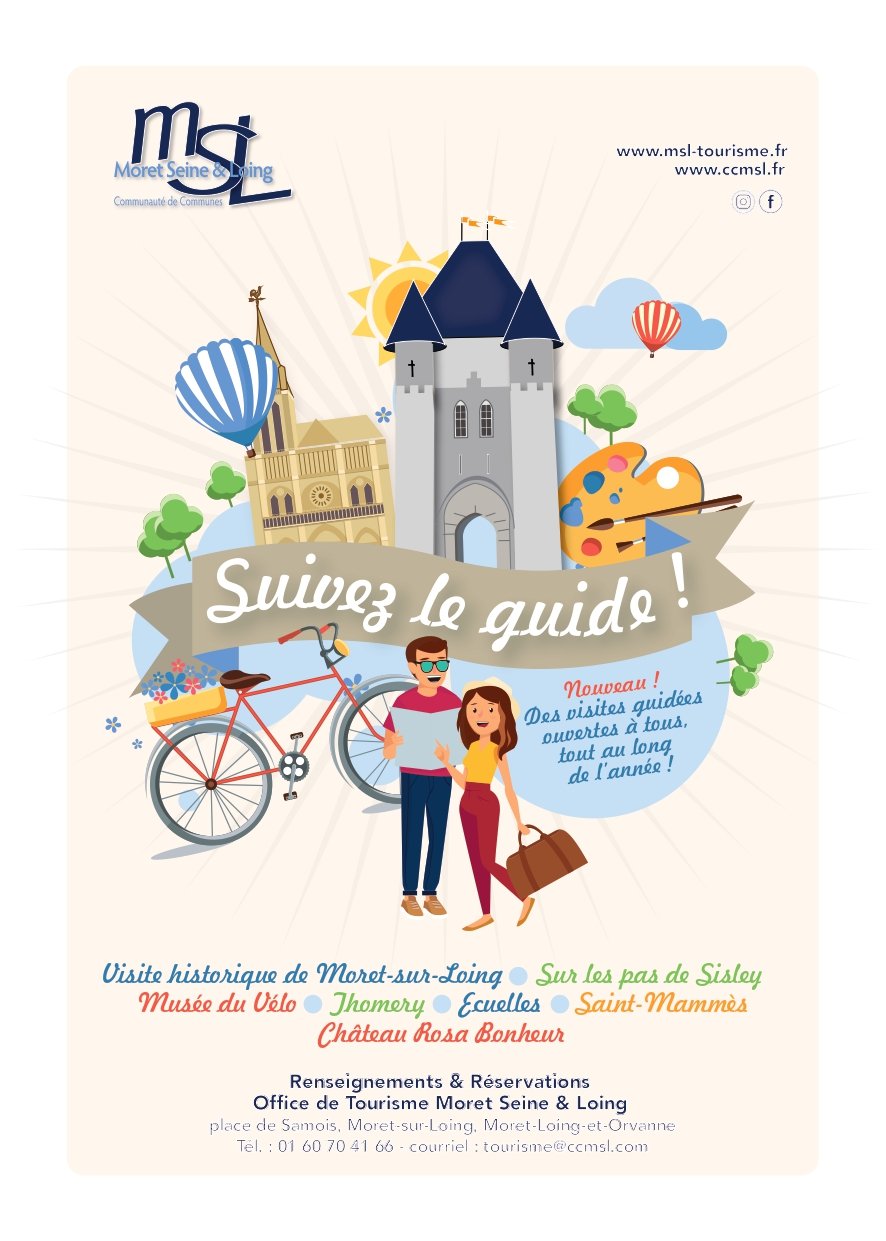 L’Office de Tourisme organise tout au long de la saison estivale des visites guidées à destination des individuels : visite historique de Moret-sur-Loing, « Sur les pas de Sisley », Musée du vélo, etc…